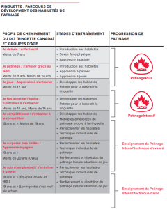 - Le programme a été conçu pour les participants du programme Patinage Plus de Patinage Canada, ayant minimalement passé l’étape 4. Cependant, la réussite de la 6e étape du Patinage Plus est l’idéal pour le développement de l’athlète.
