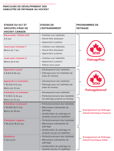La liste suivante décrit les étapes appropriées pour le développement des habiletés propres au sport. Le programme de Patinage Intensif Plus est axe sur le développement des étapes 1 à 4, offrant une occasion d’explorer l’étape 5. Il est très important que les joueurs acquièrent des habiletés de patinage dans cet ordre, en vue d’assurer un fondement solide et efficace pour d’autres aspects du jeu, y compris le maniement du bâton, le tir, le jeu stratégique, etc.